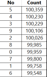 and 1,6,7,8,and 0 have less than 100,000 each